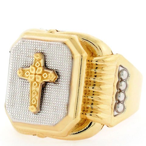 10k Two Tone Gold Religious Cross Fancy Mens Ring Overview