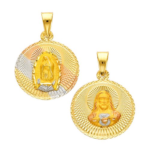 The innovative design in our 14K 3 Tri Color Gold Dia-Cut Religious Mary Guadlupe & Jesus Double Side Stamp Charm Pendant makes for an instant hit. Give someone you love the gift of a famous religious emblem as well as a fashionable piece of jewelry. Order this today or browse our incredible selection of fine gold pendants.Available at Amazon ******** Check Price Now! *********