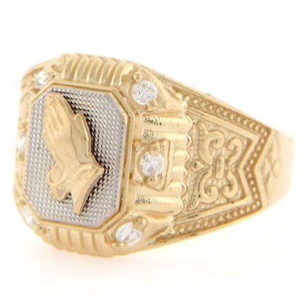 14K Two Tone Gold Praying Hand CZ Religious Mens Ring Review