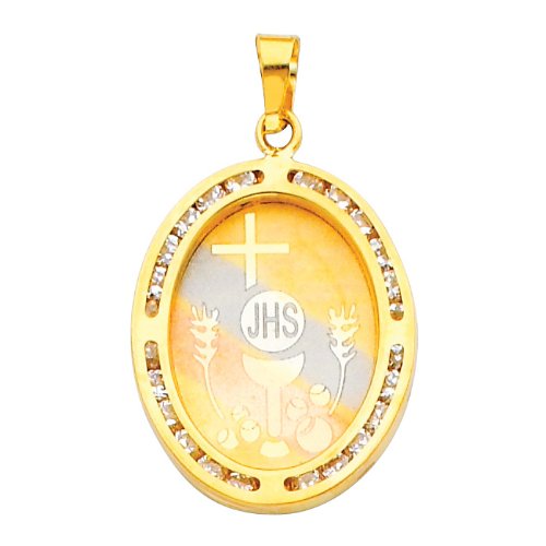 14K Yellow Gold Religious Communion CZ Cubic Zirconia Charm Pendant Review